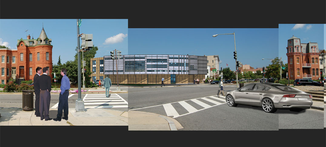 Graduate design studio project focused on the tectonic nature of building design. The program requirements included a 20,000 sq.ft. public library on a corner site in Washington D.C. at the intersection of Vermont Avenue and T Street.