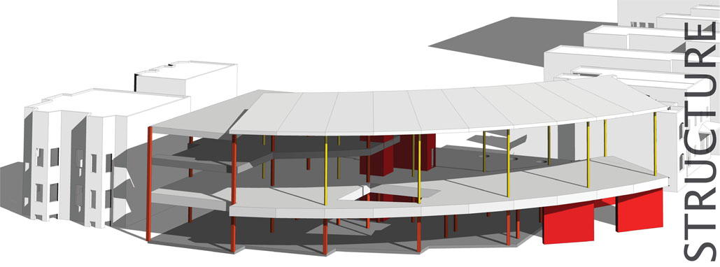 I focused on the exploration of massing studies, structural and mechanical systems integration, as well as sustainable building strategies. The mutidisciplinary design team at ARUP consulted with me throughout the course of the design process. The project culminated with the completion of a detailed half inch-scaled sectional model of the design which highlighted the structural detailing and building systems integration.